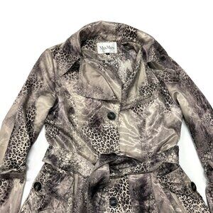 MaxMara Belted Coat Womens Large Animal Print Lightweight Button Up Flared
