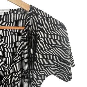 Keywords: MaxMara top, black and white blouse, geometric print shirt, designer top size large, MaxMara L, short sleeve blouse, Italian designer clothing, workwear top, minimalist fashion.