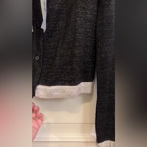 This elegant MaxMara cardigan features a sophisticated black and gray color palette, perfect for adding a touch of class to any outfit. The open-front design and long sleeves offer a timeless look, while the soft texture ensures comfort throughout the day. Ideal for layering, this cardigan is a versatile addition to your wardrobe.