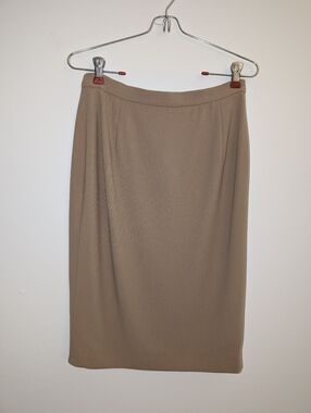 Sleek black pencil skirt by MaxMara. Tailored waistband with subtle front pleat. Smooth, refined fabric for a polished look. Versatile for office or evening wear.