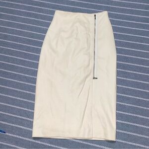 Good give in fabric. Convenient beautiful slit at left side. Zip up left side.