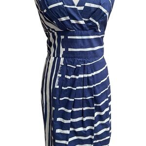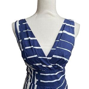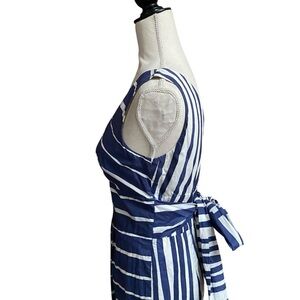 MaxMara Blue White Stripe Midi Dress Wrap V-Neck Belted Sleeveless Size 4
