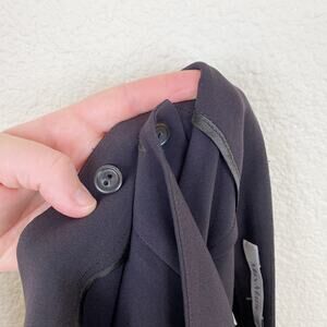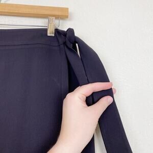 Features: dark chocolate brown, midi length, wrap style with tie on the side, adjustable button closure inside, semi-thick crepe-like material