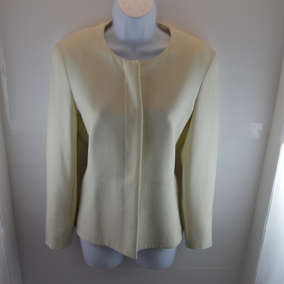 Max Mara Cream Off White Long Sleeve Wool Suit Jacket with Hidden Buttons. US Size 10. 96% Virgin Wool, 4% Elastane. Lining 95% Acetate, 5% Elastane. In excellent used condition.
