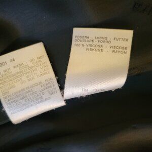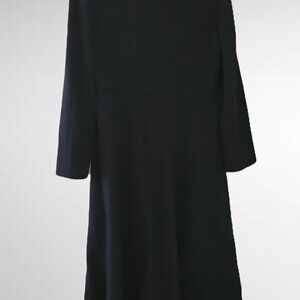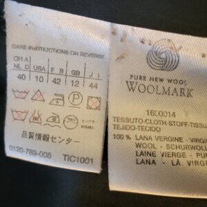 Gorgeous A line flair funnel neck virgin wool coat size 10. Lined in 100% viscose. Minor hemming damage alone the back seam, but easily fixed with some tailoring. No rips, holes, stains, or missing buttons.