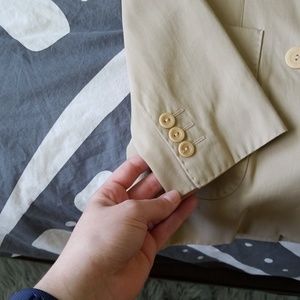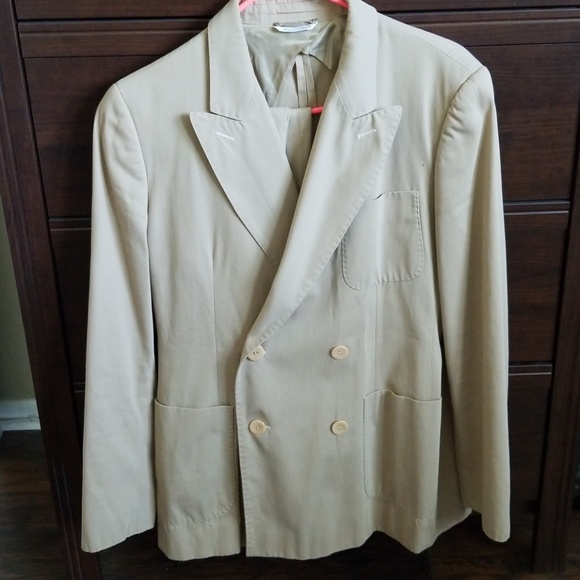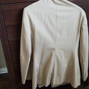 Beautiful high quality jacket, perfect to dress up or down. Made in Italy. 100% cotton. 4 front pockets as seen on Pic. I have the matching pants but I am keeping because they fit amazing. I just have no need for the jacket. This has been dried cleaned.