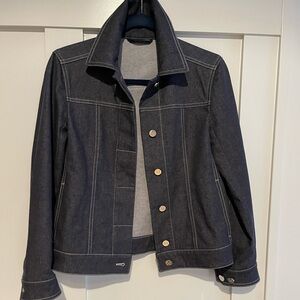 ULTRAMARINE color. Silver buttons, white stitching. Like new condition!!