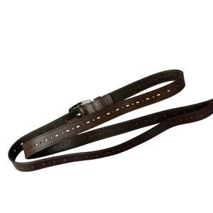 MaxMara Leather Wrap Belt Womens Medium Brown Gunmetal Buckle Perforated Itay 1"