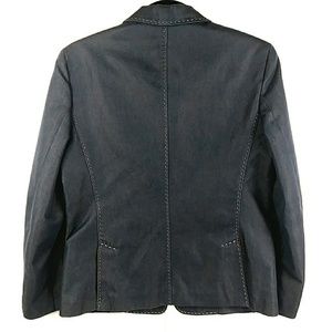 MaxMara Navy Blazer Exposed Stitching Jacket 10 Iridescent Fabric Dark Acadamia