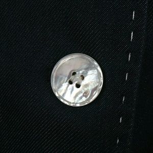 MaxMara Exposed Stitching Navy Blue Blazer Jacket. Made in Italy. Exqui made jacket. Light shoulder pads. Faux pockets. Mother of Pearl buttons. Cotton Blend.