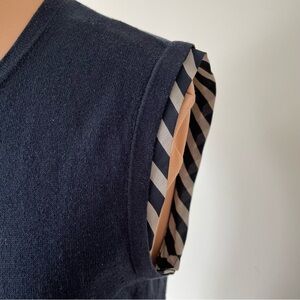 MaxMara Navy Blue Cotton Silk Striped Sleeveless Knit Top EUC Size Small
