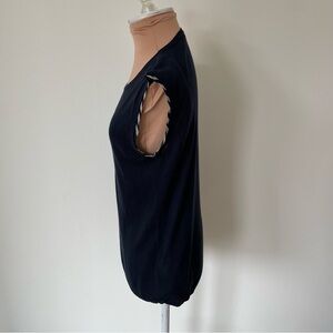 Knit top by MaxMara. This top features knit cotton fabric, silk striped detailing around the arm holes, crew neck.