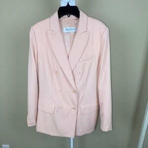 MaxMara Peach Double Breasted Button Front Virgin Wool Blazer Jacket; Size 10