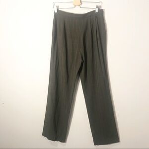 Lightweight pleated wool trouser pants with stripes. Faux front pockets.