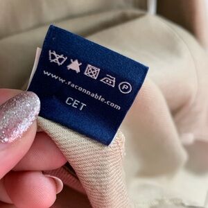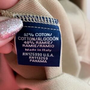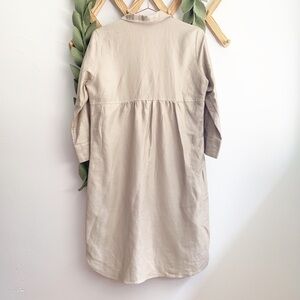 Tan shirt dress with pintucked top and split neckline. In excellent condition with no visible flaws or signs of wear. looks great with or without a belt and has pockets!