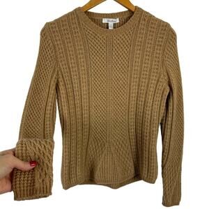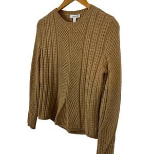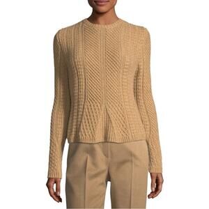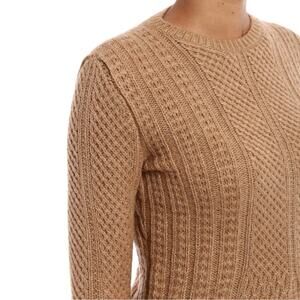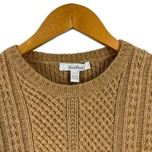 Max Mara Ronco Warm Cable-Knit Crewneck Wool Blend Camel Pullover Sweater Size Medium