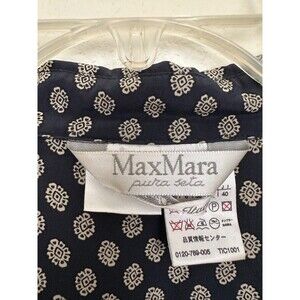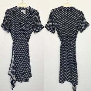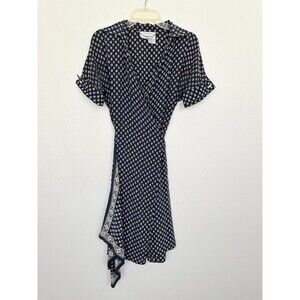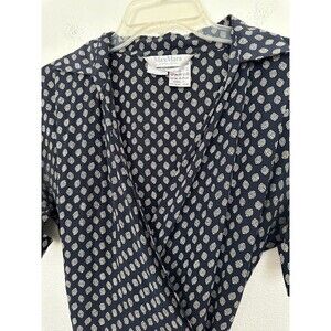 MaxMara Silk Wrap Knee Length Dress Mother of Pearl Buttons Cuffed Blue Women 6.