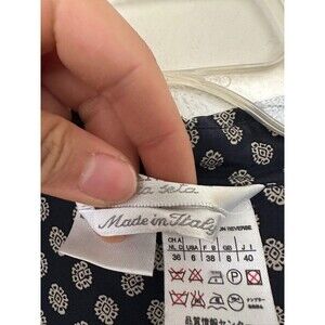 Features: Cuffed sleeve with mother of pearl long rectangular buttons, wrap dress, v-neck, made in Italy, knee length