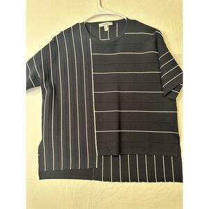 MaxMara Striped Boxy Top Navy White Short Sleeve Geometric Pattern Size M