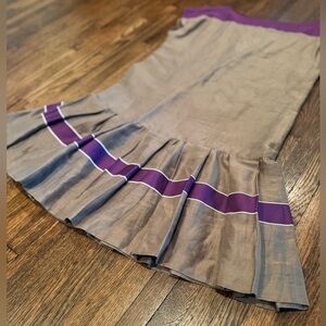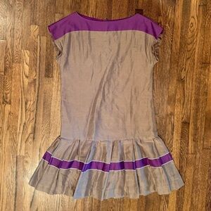 MaxMara Studio Khaki Purple Drop Waist Ruffled Prep Linen Dress Size 6