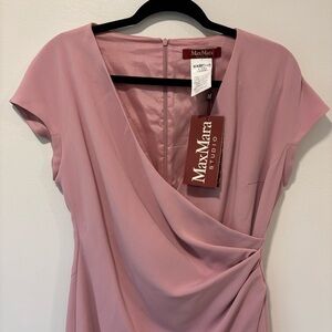 MaxMara Studio Pink Parola Sheath Dress Knee Length Formal Faux Wrap Luxury
