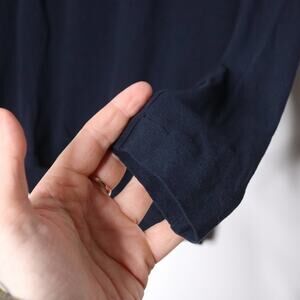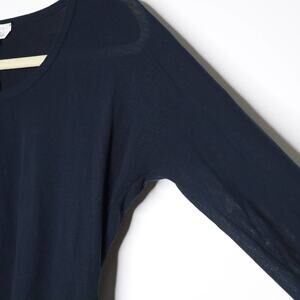 DETAILS: MAX MARA Top Women's M Navy Semi Sheer Knit 3/4 Sleeve Solid Scoop Neck. Lightweight basic knit top.