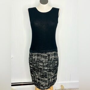 Cashmere blend top with tweed skirt connected. Would look great with a blazer.
