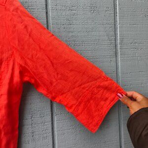 MaxMara Weekend 100% Linen Button Down Blouse sz S/M Orange Beach Quiet Luxury