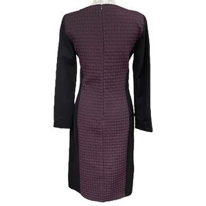 Max Mara Weekend Purple Black Houndstooth Knee Length Midi Dress Size Medium In great condition. The sides and sleeves are a black, stretchy material, while the front and back panel is a textured, dark-purple and black houndstooth fabric. The textured pattern extends from the chest area down the skirt, meeting the black section at a vertical seam. Both fabrics are made of a heavier weight material to help keep you warm. Sheath dress Knee length Fitted Crew neck Long sleeves Hidden back zipper Measurements straight across Chest: 17.5" Waist: 15.5" Length from shoulder to hem: 40.5" Inventory Number: 0250000