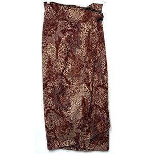 MaxMara Weekend Vintage Cotton Wrap Midi Skirt in Moody Floral Print In Warm Brown and Tan 8