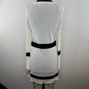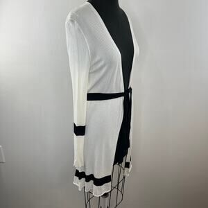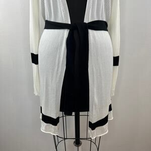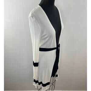 MaxMara White Black Trim Tie-Waist Ribbed Midi Duster Jacket Cardigan Sweater S