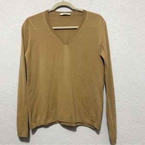 MaxMara Women’s Golia Tan V-Neck Long Sleeve Pullover Sweater