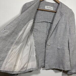 MaxMara Womens Linen Blazer White/Black Houndstooth size 4 Preppy Career Wear