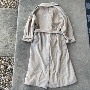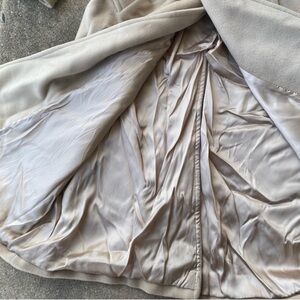 Features: lined. Removable belt. Button cuff tab detail. Notch collar. Double breast