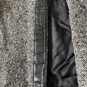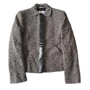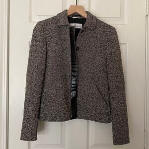 Item: Marled gray/black and white wool blend sweater blazer with button closures from MaxMara. Made in Italy.