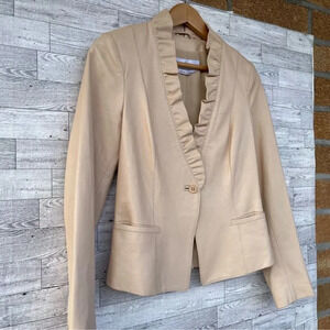 100% leather. In very good condition color is exactly like the pictures and video, beige cream or sandy tan or light tan .