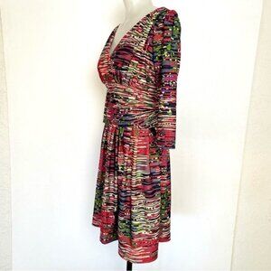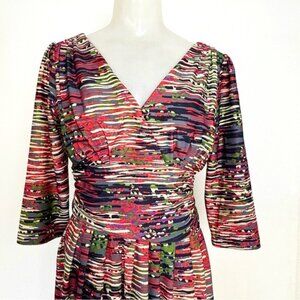MaxMara multicolor Printed Pleated v neck Maxi Dress Large