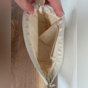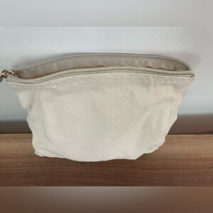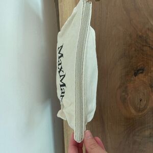Max Mara womens beige tan canvas makeup toiletries zipper bag
