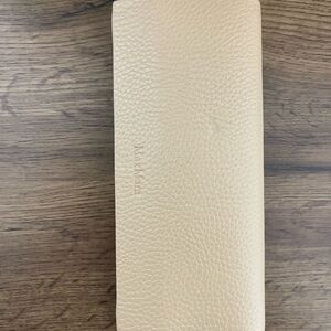 Stylish MaxMara glasses case in tan leather. Perfect for protecting your eyewear with elegance.