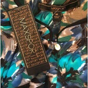ITEM: MaxSport M Teal-Blue Floral Keyhole Button Neckline Sleeveless Mini Sports Dress