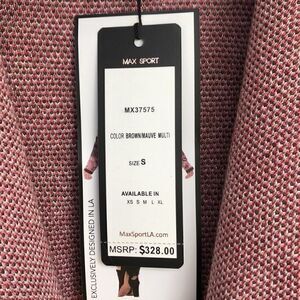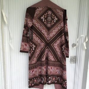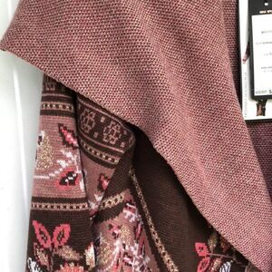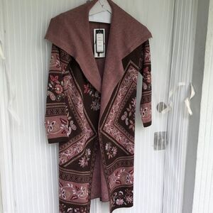 Beautiful sweater/duster open front cardigan. Mauve with brown and gold threading.