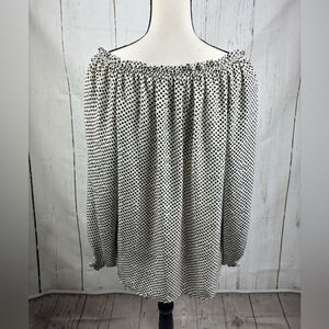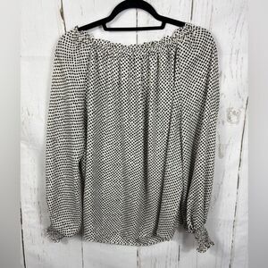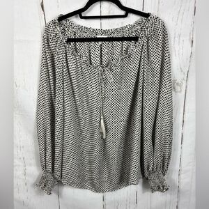 Max Studio Blouse Tie Neck Long Sleeve Ruched Cuff Geometric Polka Dot Boat Neck