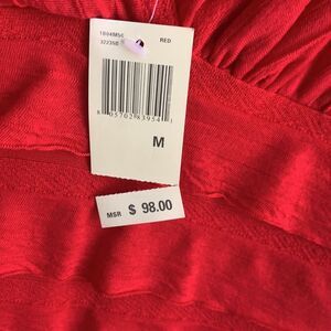 Date night ready!! Soft T-shirt fabric with tiered ruffles. Sleeveless with v-neck. NWT. Color is a bright lipstick 💄 red. Stretch. Fits over head.