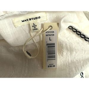 Max Studio Embroidered Tie Front Peasant Blouse Hippie Boho Top Sz Large NEW