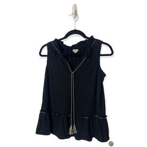 Max Studio Flowy Ruffle Tank Top | Size S | Black Tassel Detail
