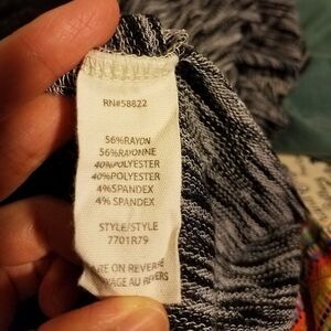 Elbow-length ruffled sleeves and a hi-lo hem. - Boatneck - Elbow length bell sleeves - Hi-lo hem - ImportedFiber Content56% rayon, 40% polyester, 4% spandex