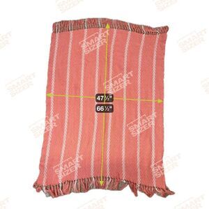 This throw blanket combines functionality and design, offering a coral and white striped aesthetic with fringe detailing. Ideal for adding texture and warmth to interiors.