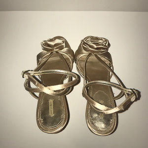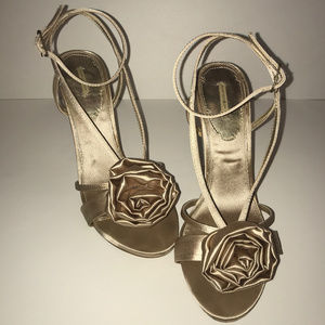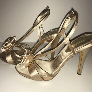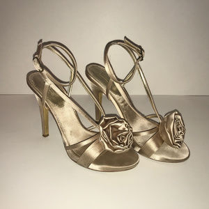 Beautiful Satin Heels with Rose on front of shoe,
