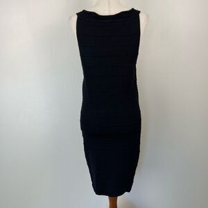 Stylish and flattering stretch fit midi dress by max studio measuring 16 inches armpit to armpit laying flat, 15 inches at the waist, and 38 inches and length of the shoulder to the hem.