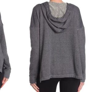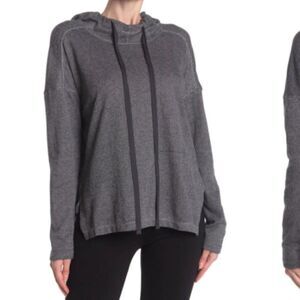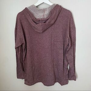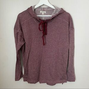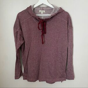 Max Studio Tunic Hoodie Striped Hooded High/low Funnel Neck Burgundy Casual Cute